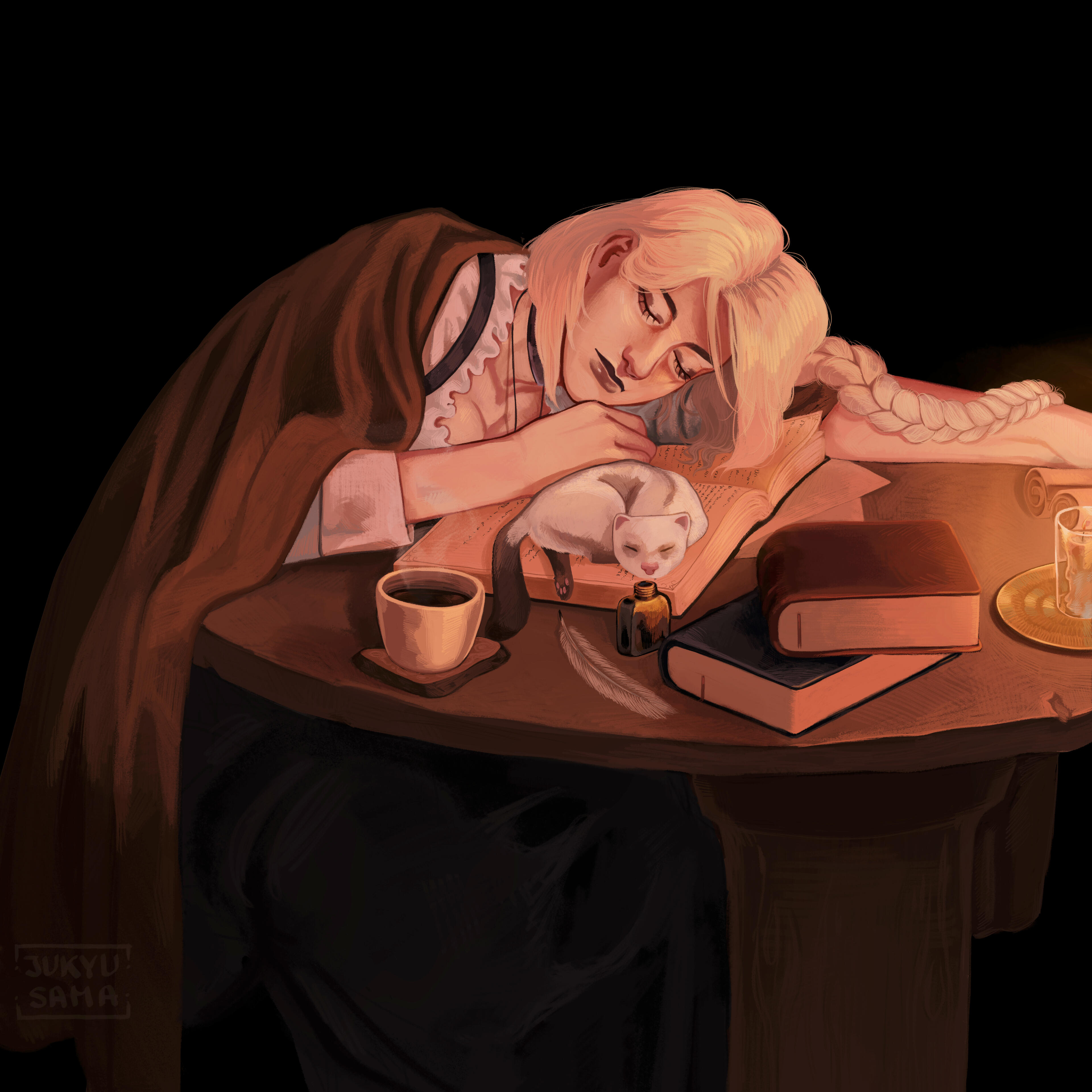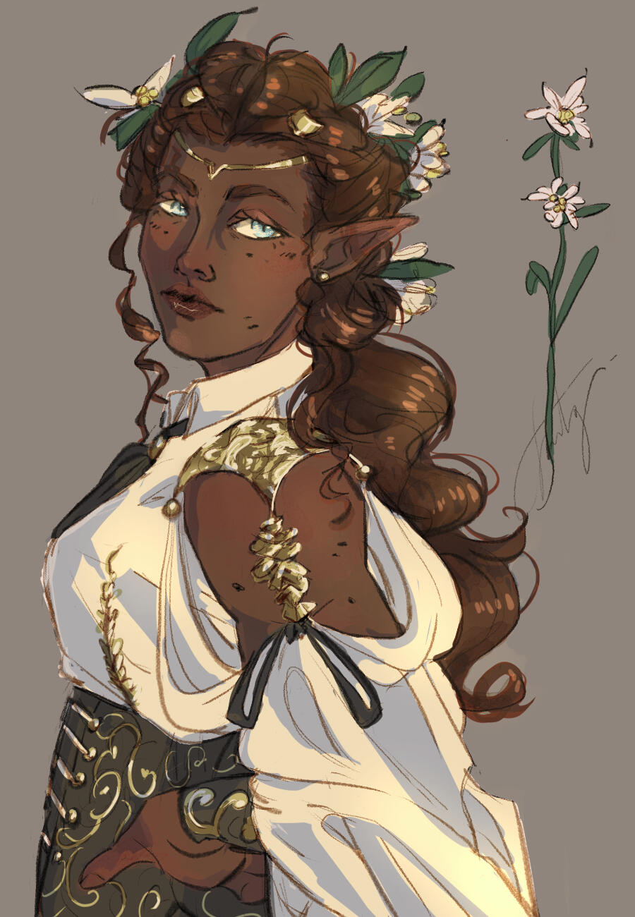 Gileas helped Galatea bathe, but although her tears had stopped, she was far from being fine.Not a moment passed without her trembling—not from the cold, he had assured the water was hot enough when Iris brought it, but for the same reason that made her rub her skin until it became red from the broken capillaries. The same that made him clench his jaw while brushing the alley filth away from her hair.They stayed silent the whole time, only the burning candles and splashing water filling the unfamiliar brothel room.That wasn’t his first time at the Velvet Inn, and yet Gileas had never visited the last room on the right, not that it seemed fit for that type of business. It was messy, with books scattered on a wonky desk and a simple bed on the opposite wall, way too small and visibly uncomfortable for two people to spend the night in. Its decorations had nothing to do with the turquoise tapestry in the one he usually visited with Iris, nor with the delicate shade of rose in Magnolia’s.Here everything seemed functional and…warm.Once the last knot untied under his brush, Gileas helped Galatea get out of the bathtub, holding her by the elbow every time her ankles yielded. He made her lie in bed and held her hand as she fell asleep until her breathing became regular and her fingers fell softly on the pillow.Before leaving the room, he turned back to his half-elf appearance and went downstairs to a silent brothel and ten curious eyes.“How is she?” asked Iris, her tail low.“She’s asleep.” He ran a hand through his now chocolate hair and rested it on the back of his neck. “Thank you for helping her. I don’t know what would have happened if—”“Don’t even say it,” she interrupted him. “We’re lucky Lawrence found her.”“Lawrence?”Iris nodded and pointed to a young man who sat on the edge of his chair. “He was the one who brought her inside.”Gileas glanced at him, his eyes lingering on the blood on his collar, her blood. “Did you see who did this to her?” he asked, his voice colder than he wanted.Lawrence shook his head and lowered his gaze. “They were already fleeing when I arrived.”“How many?”“Three.”“Did you see where they went?”“I didn’t look.” He pressed his lips into a thin line, his fists clenched. “I just ran to Galatea. She was bleeding, and…her eyes…”Gileas’s heart ached.He had seen her.Iris, Magnolia, none of the girls were a problem. All of them had known about their true nature for months—years in the owner’s case—without consequences, but him? Could he be trusted with their secret? With the white skin hiding under their illusion?“I thought I was too late.”Oh.Gileas took another look at him, at his sea-blue eyes peeking behind the messy mahogany hair, but all he could see in them was genuine worry for Galatea’s life.“You weren’t.” He sat in front of him. “We changelings don’t turn back only on the verge of death,” he continued, reaching for Lawrence’s glass.His fist relaxed. “I didn’t know.”Gileas shrugged, letting his half-elf form slip away, like an itchy blanket too annoying to keep on. “It’s not something we shout from the rooftops.”“I see…” He lowered his head and twisted his fingers. “Will she be fine?”Gileas took a sip of his, well, Lawrence’s drink.There wasn’t a simple answer. Galatea was strong, always had been, but…that was more she had ever had to endure. And despite his efforts, Gileas couldn’t stop thinking about how she jolted away from him.Something had broken inside her, he knew it had. Her light had dimmed, but…Lawrence didn’t need to know.He took another sip and finally answered, “She will.”